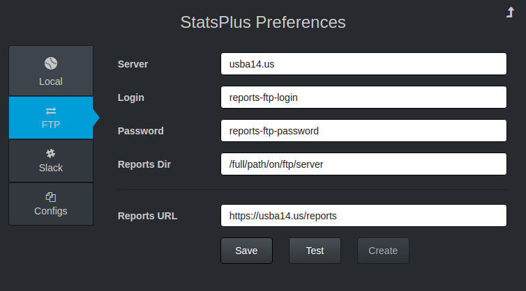 After you have entered the Slack Token and the Webhook URL for your Slack group, press the "Test" button to verify that you've copied the info correctly for the StatsPlus app to have the required access.