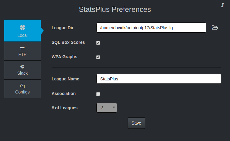 You must hit the Save button after making any changes on this page. If the league directory is not valid, a notice will appear, and the settings will not be saved. |